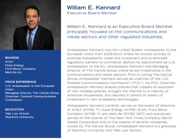 William E. Kennard is an Executive Board Member of Staple Street Capital, also worked for The Carlyle Group.