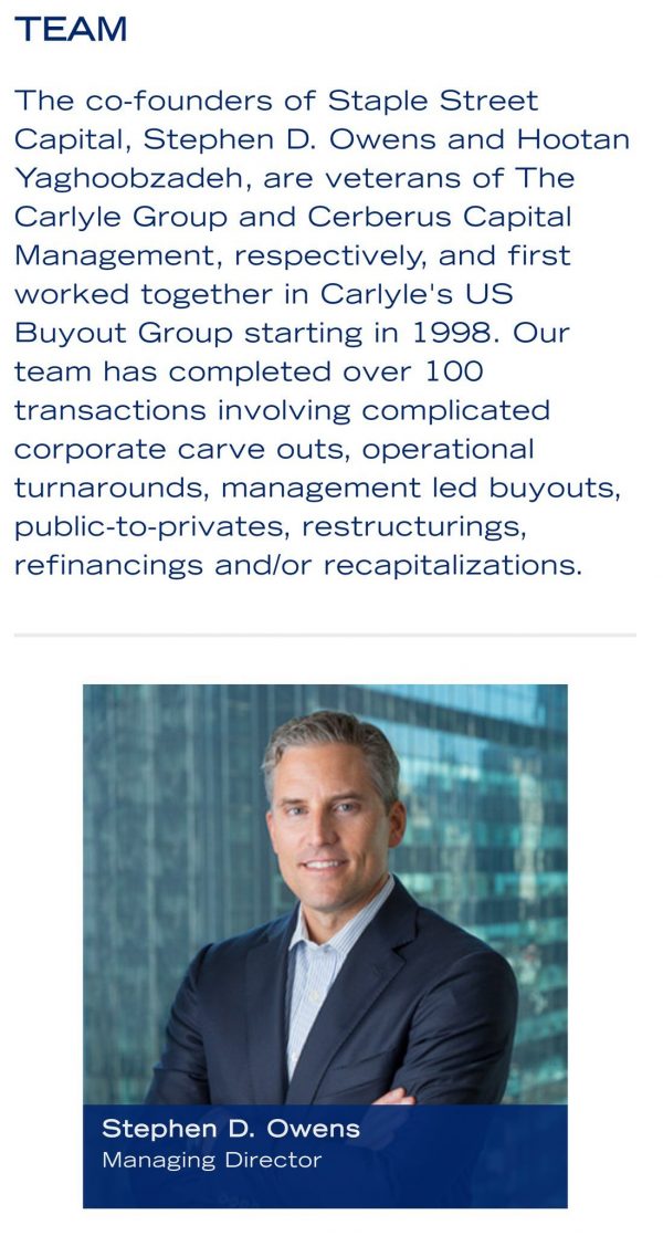 Former Carlyle Group & Cerberus Cap execs now part of Staple Street Capital.