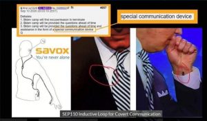 This is a covert operation to steal the election. The Left needs covert spying, listening and communication devices. Here’s one brand of the device the Biden team used if you’d like to know more about the Democrat’s cheating schemes. Using a clarity, interference-free microphone system, complete with neck loop and discrete wireless earpieces, Biden’s advisors (who aren’t senile like him) were able to review every statement with him before he spoke, tell him what NOT to say, tell him when to smile and laugh things off, and prepare him so he sounded, at the least, functional.