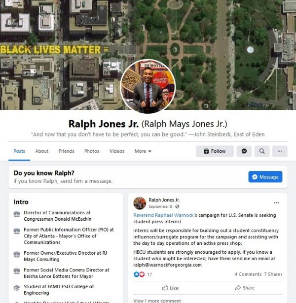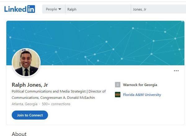 Ralph Jones Jr. also includes links to his work with Democratic candidate Warnock on his LinkedIn page.